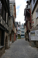 Next we headed for Dinan, a wonderfully situated walled town on the hilltop overlooking the River Rance. Unfortunately, it turned out to be attractive to other tourists too and we couldn't find a park in the old town. We descended down to the port, which proved almost as crowded and luckily found a spot to park. We had moule frites on the water front and then had a quick explore. Visitors were rowing or motoring up and down the river, cycling and walking through the pretty little port.